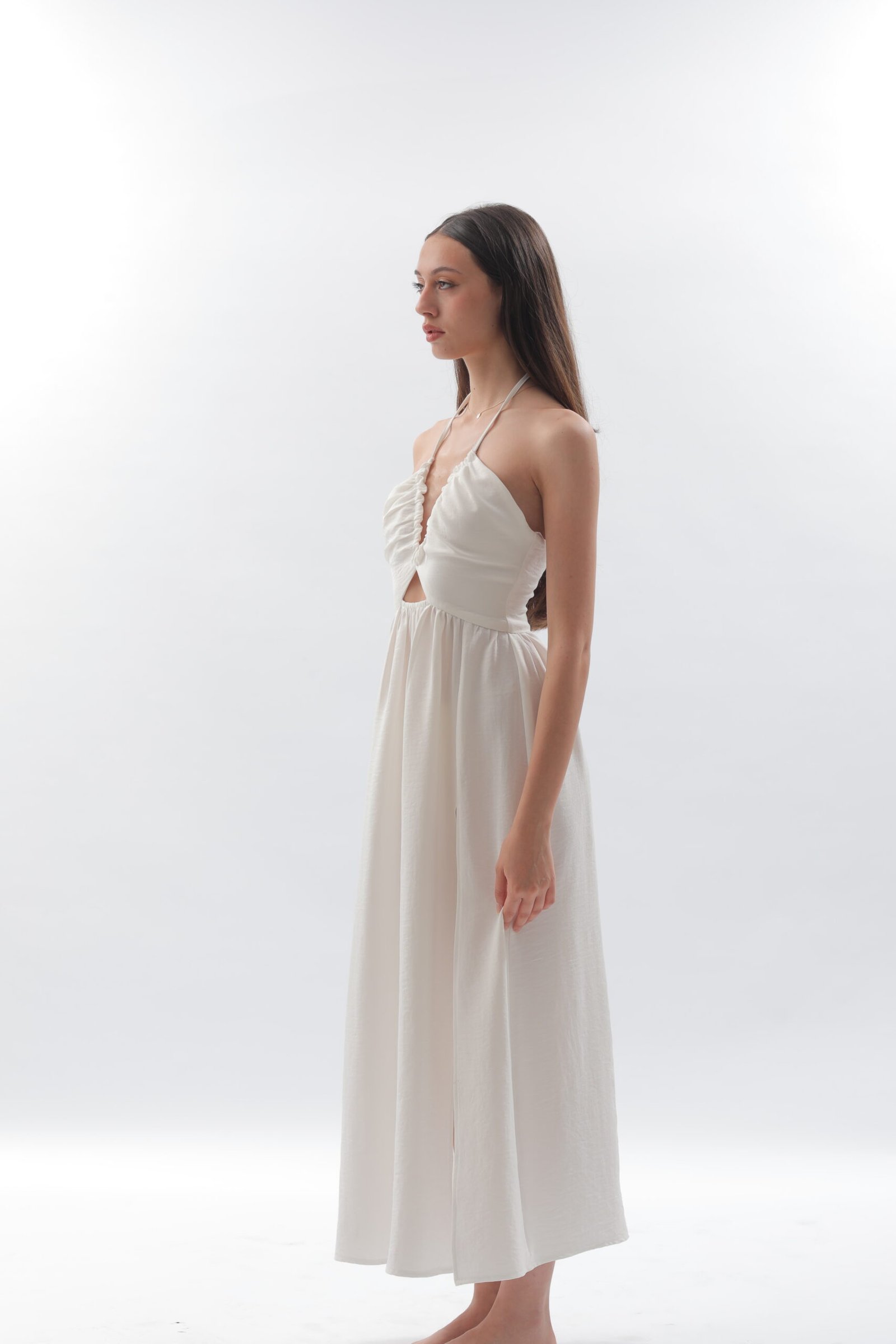 This piece was made for summer getaways, with its ancient royalty flair, strategic slit, and light linen fabric.